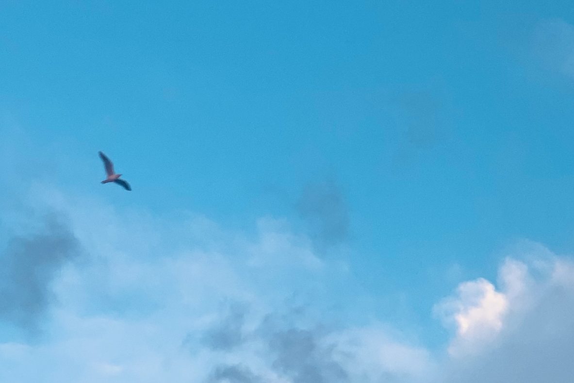 skimming its surface like a teaspoon.